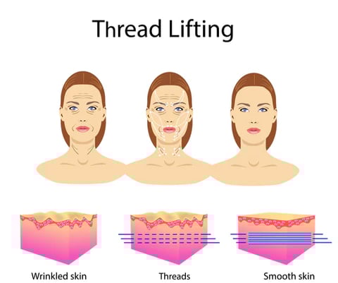 A thread lift is a type of procedure wherein temporary sutures are used to produce a subtle but visible "lift" in the skin. Instead of removing the patient's loose facial skin surgically, the cosmetic surgeon simply suspends it by stitching up portions of it.